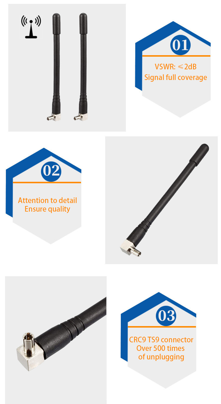 4G omni-directional external stick antenna 91mm TS9/CRC9 connector